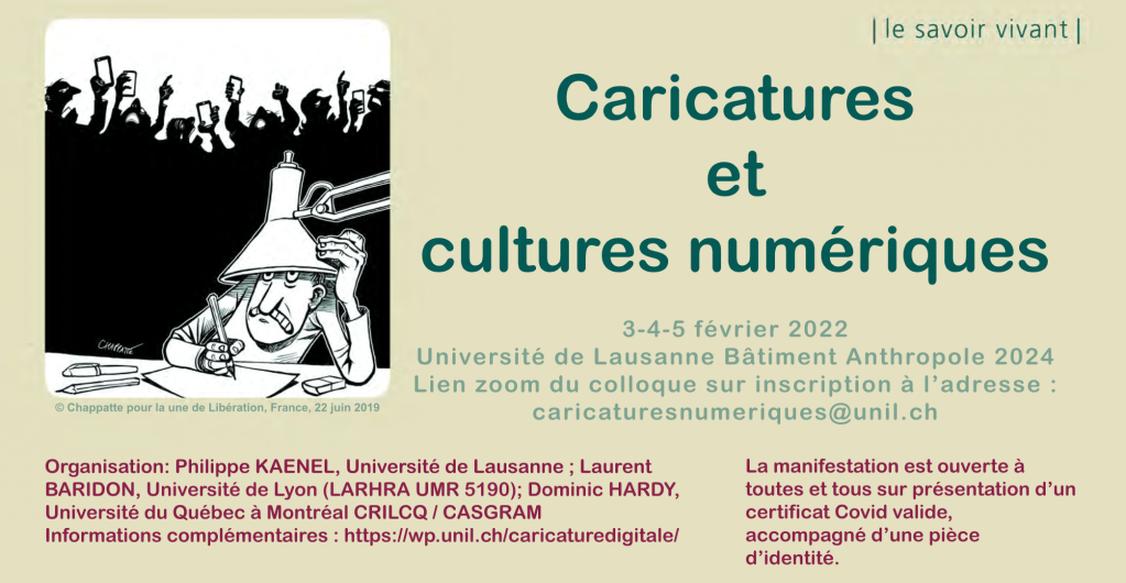 Caricatures et cultures numériques (hybrid conference on 3-5 Feb. 2022) Posted on January 12, 2022 by commhistorysection ProgrammeDownload Share this: Click to share on X (Opens in new window) X Click to share on Facebook (Opens in new window) Facebook Like Loading... Related